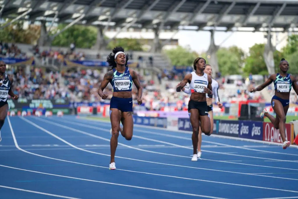 Jamaicaβs Thompson-Herah broke the meet record with a time of 10.72 seconds, .25 ahead of the Tokyo bronze medalist Shericka Jackson, who took second place in Paris.
