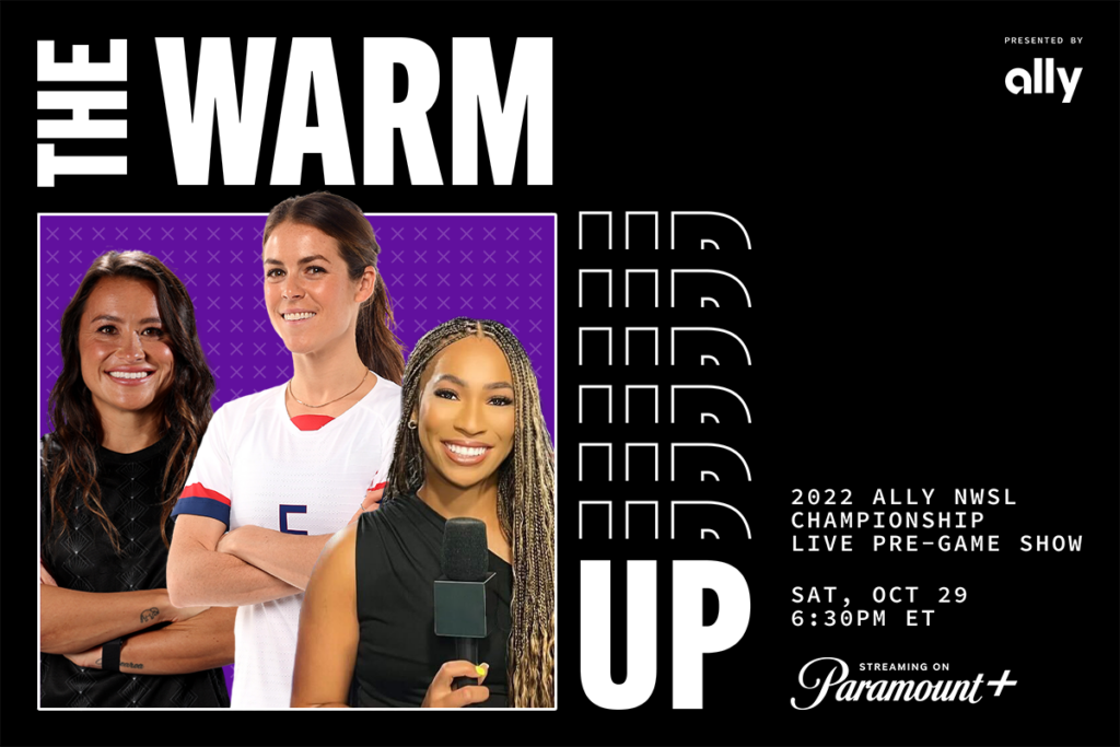 The show will be broadcast on site from Audi Field in Washington, D.C. ahead of the championship game on Oct. 29. NWSL stars Kelley O’Hara and Ali Riley will serve as hosts alongside award-winning broadcaster Autumn Johnson. Together, they will preview the matchup and bring you the biggest storylines heading into kickoff. Viewers can tune into The Warm-Up Presented by Ally on Paramount+ at 6:30 p.m. ET.
