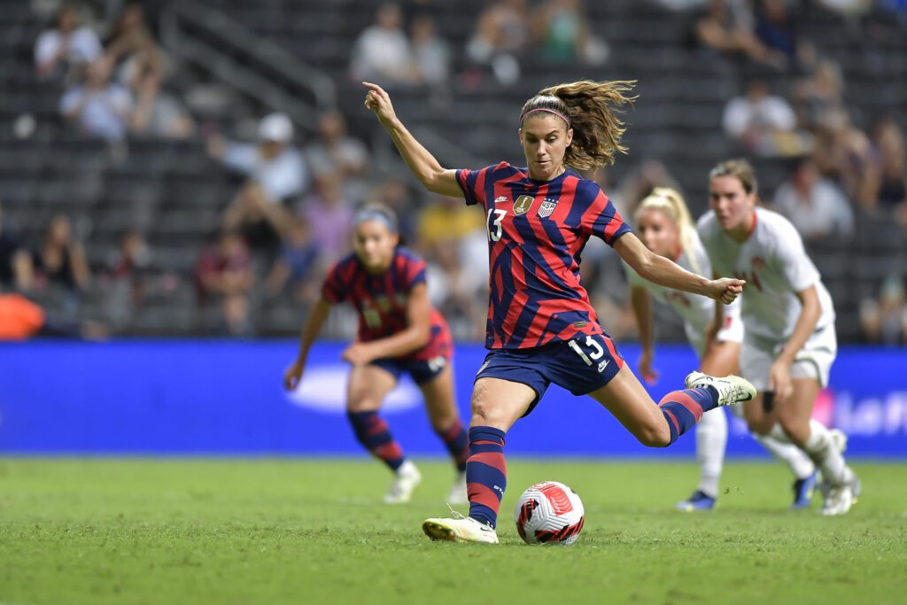 After a series of missed chances, a penalty kick drawn by Rose Lavelle in the 78th minute provided the USWNT with the breakthrough goal. Alex Morgan lined up over the ball, then beat Canada keeper and her San Diego Wave teammate Kailen Sheridan from the spot to put her side ahead.