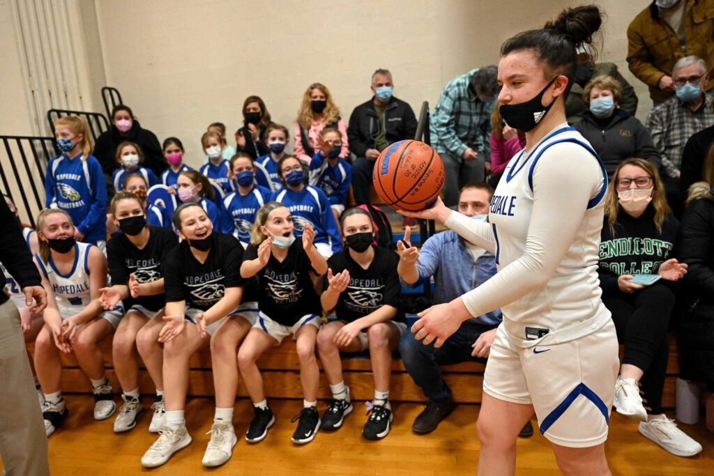 Grace walked into school dressed like her hero, with a Hopedale No. 1 jersey over her chest and her brown hair tied up in a bun. She cut a similar image to Frongillo, the senior guard committed to Bryant University who recently scored her 2,000th career point. When Frongillo graduates this spring, she’ll no doubt leave behind a legacy remembered for years to come.