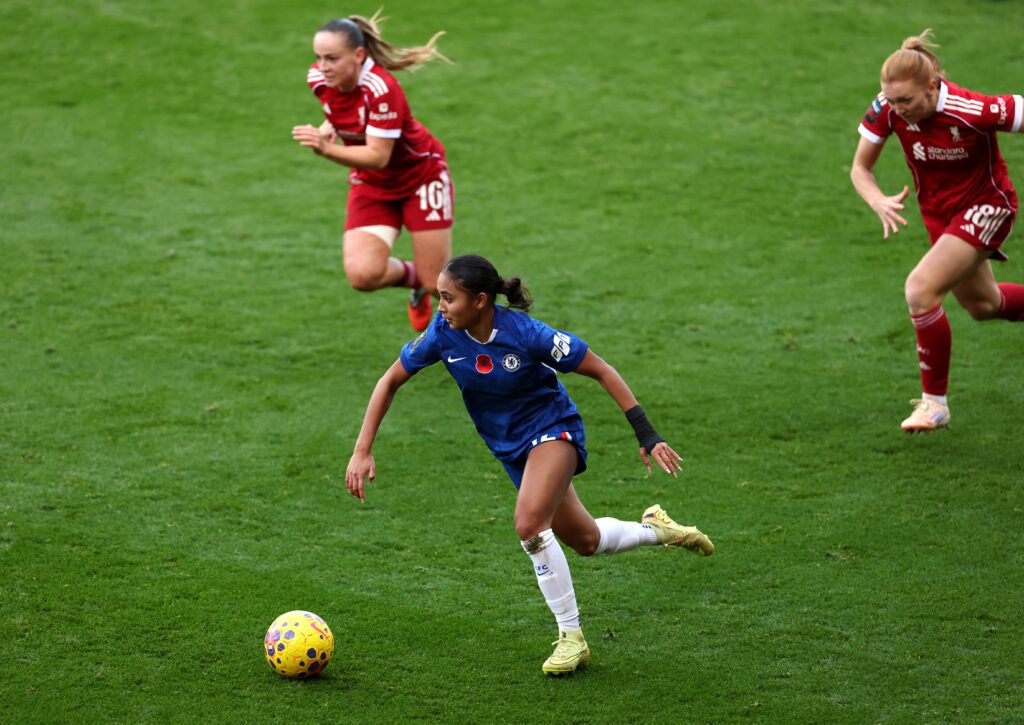 The young forward found the back of the net in the ninth minute of the Blues' 1-1 Sunday draw with Liverpool, solidifying her status as a decisive attacking threat for her new club.