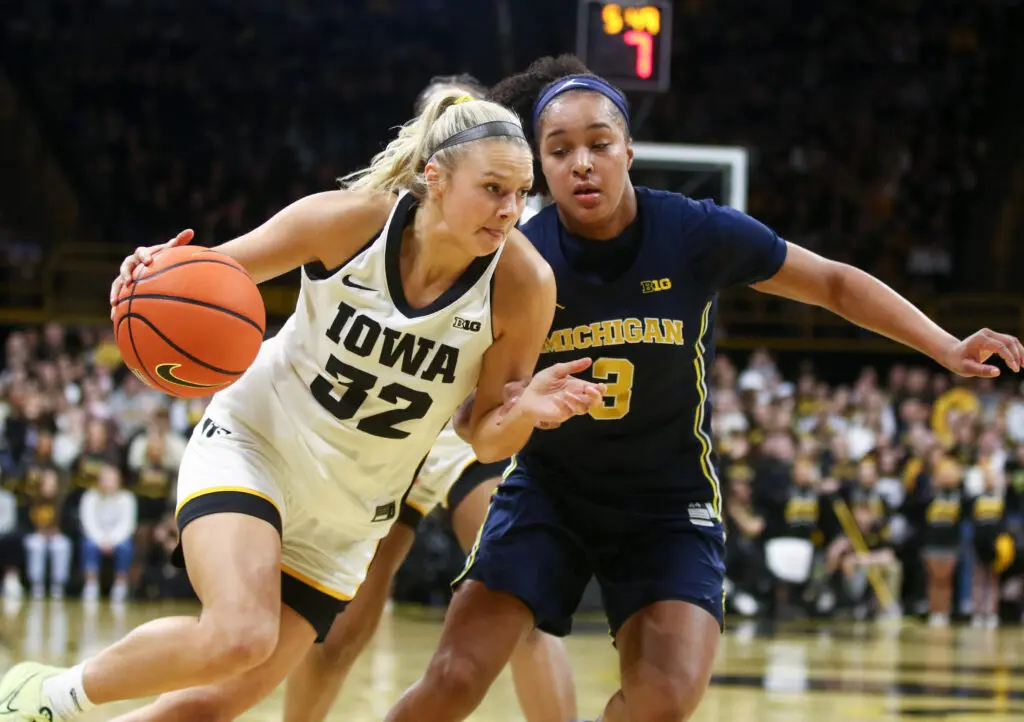 No. 13 Iowa refuses to back down, handing No. 6 Michigan a 62-44 upset loss on Sunday to tie the Wolverines for second in the Big Ten basketball standings with just one week left in the 2025/26 NCAA regular season.