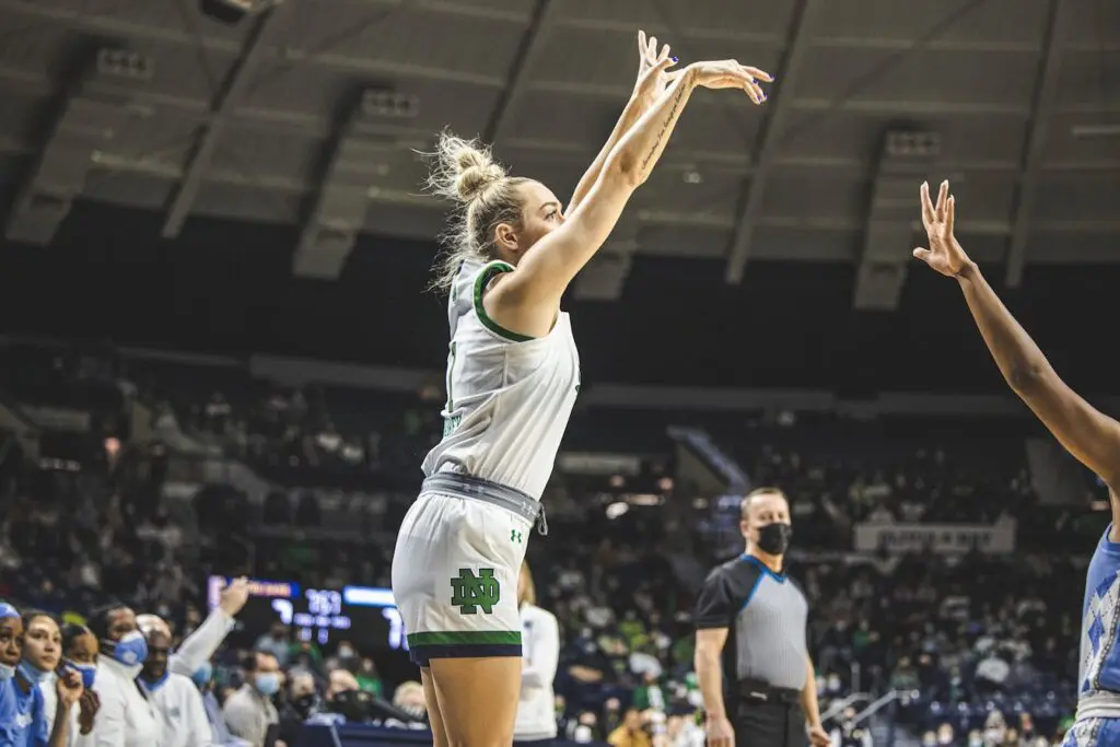 Dara Mabrey led all scorers with 24 points, making a season-high six of her 13 attempted shots from beyond the arc. Sonia Citron added 12 points and 10 rebounds for the Fighting Irish, while Maddy Westbeld contributed 11 points, five rebounds and two assists.