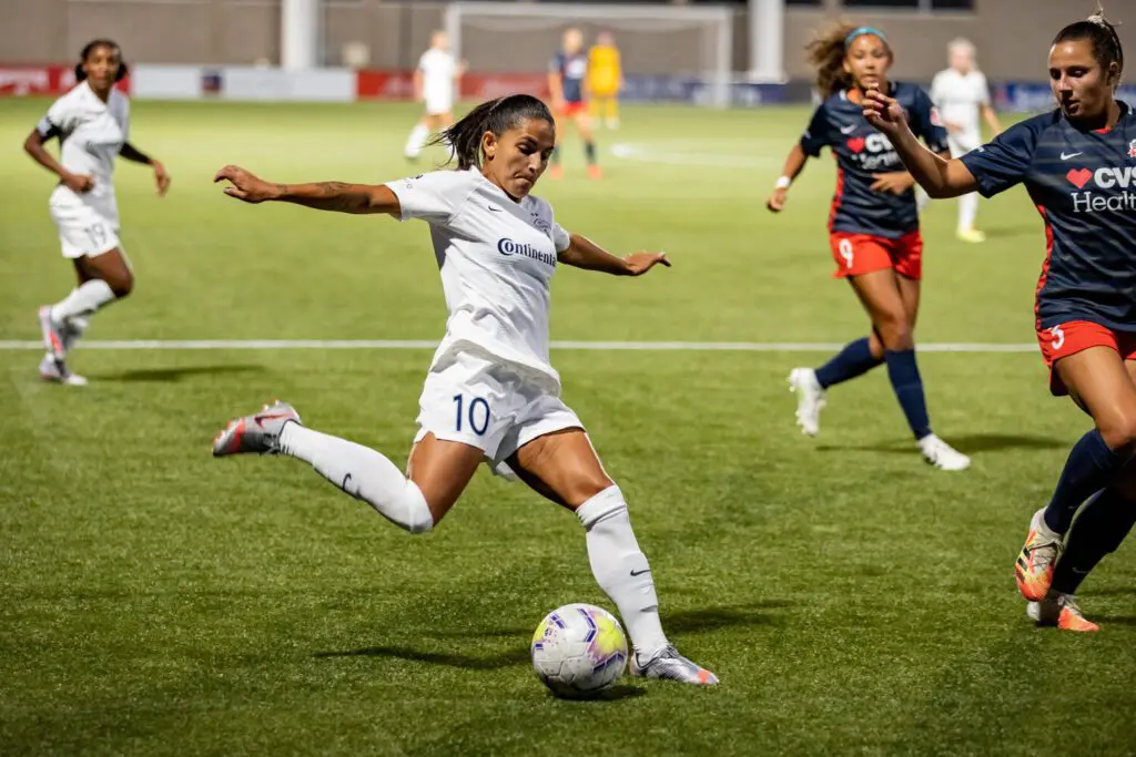 Still, there is considerable room to grow for a side that has upped its level of play considerably. That was on display against North Carolina. The tactical decision to try and out-possess the Courage was the right one, and was even suggested by Haley Kopmeyer on Just Women’s Sports’ IG live with David Copeland Smith of Beast Mode Soccer ahead of the match. Nevertheless, the Spirit’s back line was not playing high enough up the pitch with or without possession, putting unnecessary strain on the midfield. When North Carolina brought in its reinforcements, the Spirit defense crumbled.
