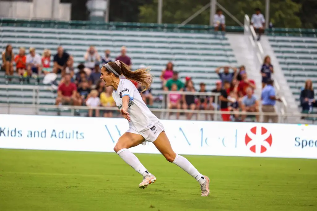 Houston took the lead early, with Shea Groom slotting home a go-ahead goal in the eighth minute off of a North Carolina turnover. Saturday marked Groom’s 100th regular-season NWSL appearance and second goal of the season.