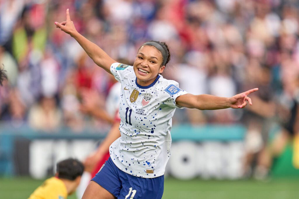 The Portland Thorns star led the NWSL and the USWNT in goals in 2022, with 18 for her club team and 11 for her country. The NWSL MVP also helped lead her team to the 2022 championship. While the 23-year-old is dealing with a post-World Cup knee injury, she again leads the NWSL Golden Boot race with 11 goals.