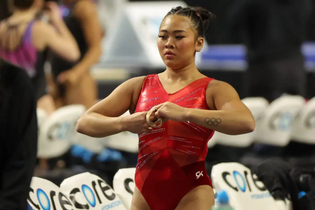 HOFFMAN ESTATES, Ill. — Sunisa Lee walked out to the floor for podium training for the Core Hydration Classic on Friday carrying a giant backpack. Before she could take too many steps towards the competition areas, she was greeted by Jordan Chiles, her 2021 Olympic teammate, with a giant hug. Chiles’ infectious enthusiasm was apparent as she ran up to Lee, who is taking baby steps back to the sport where she won Olympic all-around gold in Tokyo.