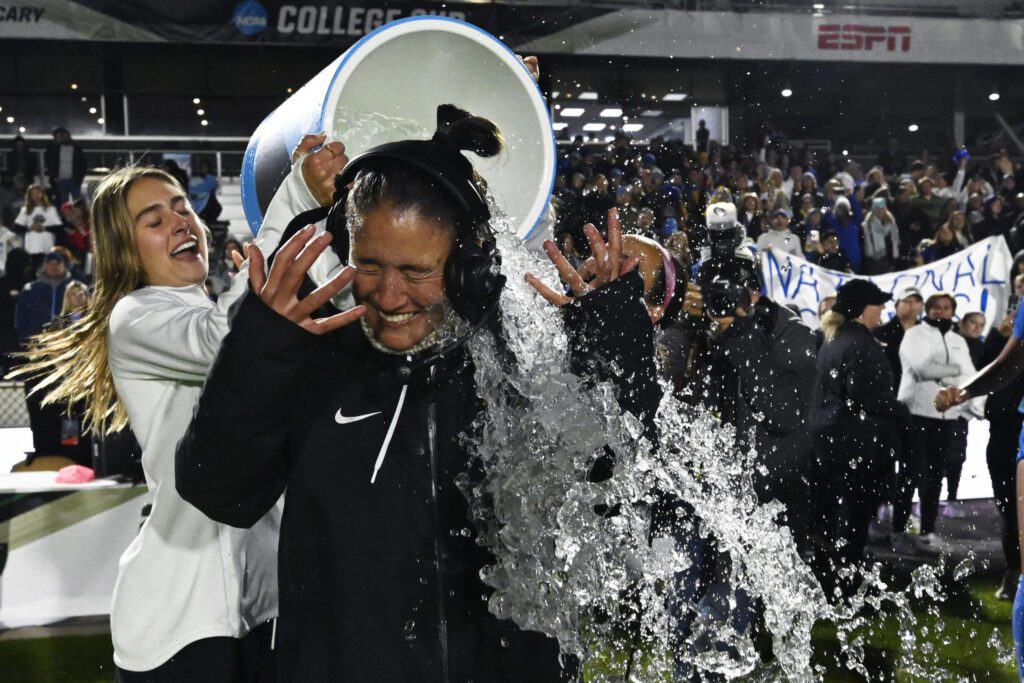 Margueritte Aozasa became the first coach in women’s college soccer history to win an NCAA title in their first year on the job, as UCLA became the first team to overcome a 2-0 deficit in a championship victory, 3-2 over North Carolina in extra time.