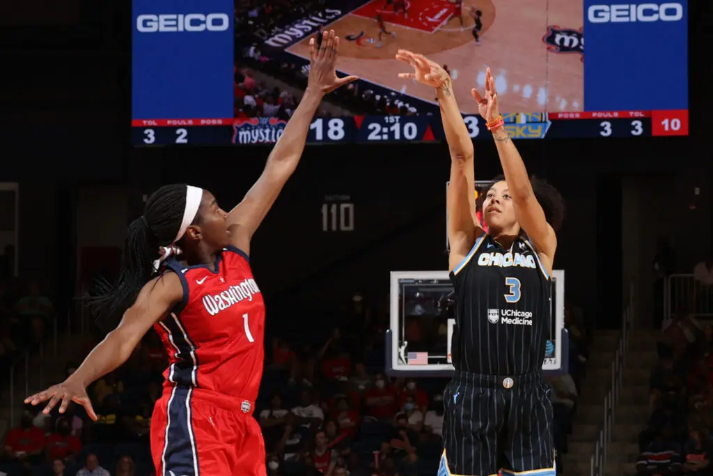 The Mystics led at halftime but the Sky went on a 21-5 run stretching from the third quarter into the fourth to take the lead.